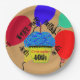 Personalisierte Meilenstein Party Papier Teller. 40. Over the Hill ist in lustigem schwarzem Text geschrieben. Personalisieren Sie für jedes Alter und mit Ihrem Namen! Geben Sie das Alter ein und es erscheint automatisch in allen drei Leerzeichen. Feiern Sie Ihren 40. Geburtstag oder einen Meilenstein mit diesen festlichen, einzigartigen Party-Tellern mit leckerem blauen Zuckerguss und Sprinklen Schokoladenkuchen mit einer rot-weißen Kerze und farbenfrohen flicker Flamme-Look. Farbenfrohe Flugballons in Rot, Grün, Blau, Gelb schmücken den Hintergrund. Party Teller mit goldbraunem Hintergrund. Humorvolle Geburtstagsfeier Einweg-Teller. Original Grafik Design © 2013 TamiraZDesign.