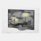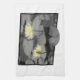 Dieses Bild zeigt zwei zarte Wasserlilien in sanften, blassgelben Farbtönen, die vor einem Hintergrund von gedämpften, graustufigen Lilienpolstern und Wasser lebhaft stehend werden. Die Blume reichen über den schwarzen Rahmen hinaus und erzeugen einen dynamischen, fast dreidimensionalen Effekt. Der Kontrast zwischen den pulsierenden Blüten und der gedämpften Umgebung unterstreicht die sanfte Schönheit und Ruhe der Szene, die ein Gefühl der Ruhe und Eleganz hervorruft.