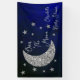 Über dem Mond Babydusche mit Silbermond und Sternen vor einem schwarz-blauen Nachthimmel