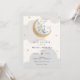 Baby Shower Einladung mit grauen Wasserfarben Wolken und Sternen mit goldenen glattem Mond und lustigem Drehbuch "Wir sind über den Mond!" Personalisieren Sie Ihre Daten oder klicken Sie auf "Weitere Anpassung", um den Schriftart Typ, Größe, Farbe anzupassen.