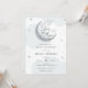 Baby Shower Einladung mit silbernen glitzernden Mond und lustigen Skripten "Wir sind über den Mond!" Personalisieren Sie Ihre Daten oder klicken Sie auf "Weitere Anpassung", um den Schriftart Typ, Größe, Farbe anzupassen.
