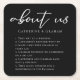 Über uns Couple Fakten Trendy Modern Black Wedding Rechteckiger Pappuntersetzer