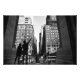 Schwarz-Weiß-Foto von einigen stehenden auf Bibliotheksschritten in New York, mit Blick auf die Skyline der Stadt, die einen Augenblick des Staunens und der Verbindung erfassen