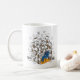 Überarbeitete Büroangestellte ertrinken in Kaffeek Kaffeetasse
