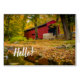 Dieses hallo Anmerkungskarte kennzeichnet eine Fotografie einer Vintagen bedeckten Brücke bei Bartrams, Penn. Die helle rote Farbe lässt es gegen das Waldlaub heraus stehen. Auf dem Innere der Karte sind zwei dekorative Eckschwalben. Sie können ein Foto oder einen Text zum Innere laden. Klicken Sie einfach an "besonders anfertigen".