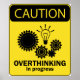 lustiges Warnzeichen über Überdenken
