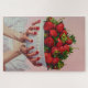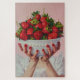 Ein auffallendes hyperrealistisches Bild einer Schüssel, die mit frischen, glitzernden Erdbeeren überflutet wird und von zarten Händen mit lebendigen roten Nägeln gehalten wird. Der weiche, rosa Hintergrund und die weißen Rüffelärmel bilden einen harmonischen Kontrast und verstärken die üppigen roten Farbtöne der Frucht. Dieses Kunstwerk erfasst das Wesen von Genuss und Schönheit in einer visuell atemberaubenden Komposition.