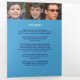 Einfaches modernes grafisches Beerdigungsprogramm in dunkelblau, cyan und weiß. Ersetzen Sie die Beispieltexte und Platzhalter-Fotos durch Ihre eigenen Fotos und Gedenksorten für Service, Literatur, Lesen oder Gedicht, Bestätigungen und persönliche Daten. Weitere passende Beerdigung- und Erinnerungsstücke sind erhältlich. Textgrafik "Das Übergeben einer Legende" und Design von www.mylittleeden.com