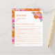Viel Spaß beim Brautparty/Bachelorette mit diesem coolen Spiel mit hübschem Rosa und Orange Aquarell, floral und bearbeitbarem Text. Passen Sie es an, wenn nötig, indem Sie auf "Bearbeiten mit dem Design-Tool" klicken.