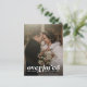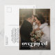 Überglückt! Für Ihren noch lustigsten Urlaub! Diese 1-Foto-Urlaubspostkarte ist ideal für Neuvermählte. Es zeichnet sich durch fett-weiße Schrift aus, wobei das Wort "Freude" in "überglückt" und ein vertikales Foto hervorgehoben wird. Ideal, um ein Hochzeitsfest oder ein Foto Ihrer ersten Erinnerungen gemeinsam als verheiratetes Paar zu teilen. Die Postkartenrückseite hat Platz für eine benutzerdefinierte Nachricht, um eine Änderung des Datums oder der Entwicklung anzukündigen. Dieses Design funktioniert auch als eine Urlaubserinnerung oder Save the Date.