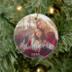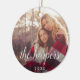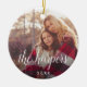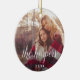Das schlichte und elegante Urlaubssornament verfügt über ein Foto auf jeder Seite mit Ihrem Familiennamen oder einer eigenen Beschriftung, überlagert in weißen Schriftzeichen. Personalisiert mit dem Jahr unten.