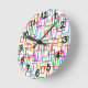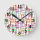 Diese Wanduhr hat ein Bauhaus-Design aus überlappenden Rechtecken in verschiedenen Farben.