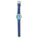 Kinderuhr aus Edelstahl mit blauem Lederarmband
