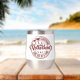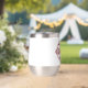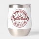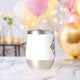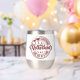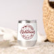 Dieser niedliche Weinglas-Wäscher hat ein lustiges rotes Logo mit zwei Weingläsern und dem Text "MotherhoOD ein Schluck nach dem anderen überleben". Sie wird es Liebe geben! Ihr Name oder Monogramm ist auf einer Seite in Rot gehalten.