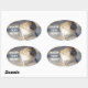 Ein Vorderportrait eines Hausspatches mit Sonnenblumenkerne in seinem Schnabel und einer bestimmten Pose. Er hat den Samen gewonnen. Funny oval Aufkleber. Personalisierbar. Sie können das Bild ändern und den Vorlagentext ändern oder löschen.