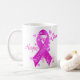 Schönes rosa Band mit Blumendekoren und "Survivor Liebe Hope Cure" zur Unterstützung von Brustkrebs Überlebenden.