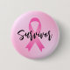 Der "Survivor"-Knopf für Brustkrebs zeigt moderne, schwarze Schriftzeichen mit symbolischem rosa Farbband und rosa Farbverlauf.