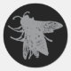 Überleben Fliegenaufkleber, grau auf schwarz. 3,8 cm