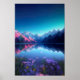 Treten Sie ein in eine Welt, in der die Zeit still steht und das Chaos des modernen Lebens weit dahinter links ist. Dieses digitale Kunstwerk lädt Sie zu einem Ort unberührter Schönheit ein, wo ein ruhiger Bergsee inmitten sanfter Hügel inmitten der majestätischen Natur schimmert. Die zarten violetten Blumen im Vordergrund scheinen in der sanften Brise zu tanzen, ihre Zerbrechlichkeit ist eine entscheidende Erinnerung der flüchtigen Natur des Lebens.