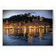 Senden Sie jemandem eine Nachricht oder erinnern Sie sich an die romantischen Abend in Portofino, Italien mit diesem Bild der Café-Lichter reflektieren auf den Wellen des klassischen Hafens Dorf.