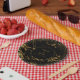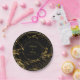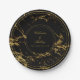 Ein schwarz-brauner Granit mit den Adern glitzernder Goldverzierungen Set den Ton für diese Hochzeitsessen Papier Platte mit Ihren Namen und Datum in einem rustikalen Serif-Schriftart.