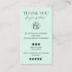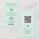 Ein cooler, schlichter und minimalistischer schwarz-pastellfarbener Minzgrün Geschäftsauftrag danke Ihnen mit 5 Sternen Review mit Herz vertikalen Layout. Fügen Sie Ihre sozialen Medien hinzu. Mit einem modernen Signaturskript-Schriftart können alle Farben bearbeitet werden , das Logo und der QR-Code hinzugefügt werden.
