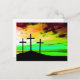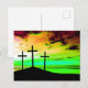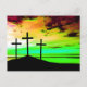 Kreuze auf einem Hügel Bunter Sonnenuntergang GOD IST GOODBeautiful Christliche Postkarte mit einem grünen Himmel