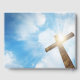 Das Gästebuch zu religiösen Themen eignet sich für verschiedenste Anlässe. Christliches Kreuz in einem blauen Himmel mit Sonnenlicht und weißen Wolken.