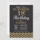 Überraschen Sie 18. Geburtstags-Einladung mit dem Zickzack GoldGlitzer. Tafel. Schwarzes und GoldGlitzer. Erwachsener Geburtstag. Mann oder Frauen Bday laden ein. Für weitere Kundenbezogenheit klicken Sie bitte "besonders anfertigen es" Knopf und benutzen unser Entwurfswerkzeug, um diese Schablone zu ändern.