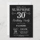 Überraschen Sie 30. Geburtstags-Einladung mit Schwarzweiss-Hintergrund. Tafel. Erwachsener Geburtstag. Männer oder Frauen Bday laden ein. Irgendein Alter. Für weitere Kundenbezogenheit klicken Sie bitte "besonders anfertigen es" Knopf und benutzen unser Entwurfswerkzeug, um diese Schablone zu ändern.
