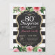 Überraschen Sie 80. Geburtstags-Einladung für Frauen. Schwarzes und Goldgeburtstags-Party laden ein. GoldGlitzer. Rosa Watercolor-BlumenBlume. Schwarzweiss-Streifen. Tafel. Bedruckbare Digital. Für weitere Kundenbezogenheit klicken Sie bitte "besonders anfertigen es" Knopf und benutzen unser Entwurfswerkzeug, um diese Schablone zu ändern.