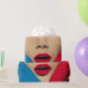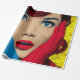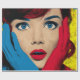 Überraschende Frau in Pop Art Geschenkpapier