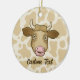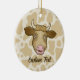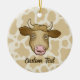 Überraschtes Kuh's Kopfbild. Nahtloser Kuhmuster Hintergrund. Benutzerdefinierter Text auf beiden Seiten.