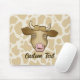 Überraschtes Kuh's Kopfbild. Nahtloser Kuhmuster Hintergrund. Eigener Text.