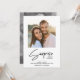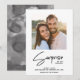 Teilen Sie die Überraschung Ihrer Verlobung mit dieser niedlichen, modernen Verlobung in Schwarz und Weiß, mit Ihrem Lieblings-Foto und handgeschriebenen Schriften. Leicht personalisiert. Copyright Anastasia Surridge, alle Rechte vorbehalten.