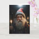 Porait Foto von super freundlichen Weihnachtsgnom erstaunt in der Linse der Kamera mit einer Kerze