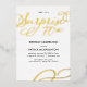Diese moderne und elegante Überraschungsfeier zum 70. Geburtstag lädt mit den Worten "Überraschung 70." in Goldfolie-Script-Schriftart und einem passenden wirbelnden Design in der unteren rechten Ecke zum Verweilen ein. Passen Sie diese trendige Einladung mit dem Namen und Party-Info an.