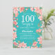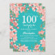 Überraschung 100. Geburtstag Rosa Blume Aquamarin Einladung