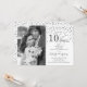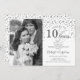 Überraschung 10. Hochzeitstag Einladung mit Foto. Elegantes Design in Weiß und Silber mit Skript-Schriftart und Konfetti. Kann angepasst werden, um jedes Jahr der Ehe zu zeigen. Bis 10 Jahre!