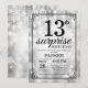 Überraschung 13. Geburtstag Einladung mit Silver String Leuchten mit Silver Glitzer Background. Silberner Geburtstag. Kindergeburtstag. Junge oder Girl Bday einladen. 13. 15. 16. 18. 20. 21. 30. 40. 50. 60. 70. 80. 90. 100. Jedes Alter. Für weitere Anpassungen klicken Sie bitte auf die Schaltfläche "Anpassen" und verwenden Sie unser Designwerkzeug, um diese Vorlage zu ändern.