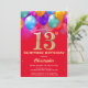 Überraschung 13. Geburtstag Rot und Gold Ballons Einladung