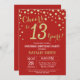 Überraschung 13. Geburtstag Rot und Gold Diamond Einladung