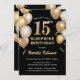 Überraschung 15. Geburtstag Black and Gold Ballons Einladung
