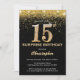 Überraschung 15. Geburtstag Schwarz und Gold Glitz Einladung