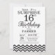 Überraschung 16. Geburtstag Einladung mit Schwarz Zickzack. Schwarz und Weiß. Kindergeburtstag. Junge oder Girl Bday einladen. Für weitere Anpassungen klicken Sie bitte auf die Schaltfläche "Anpassen" und verwenden Sie unser Designwerkzeug, um diese Vorlage zu ändern.