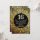 Überraschung 16. Geburtstag Schwarz und Gold Glitz Einladung