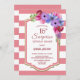 Rosa gestreiftes Lavendelblumen Überraschung 16. Geburtstag Abendessen Party Einladung.
