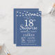 Überraschung 18. Geburtstag Einladung mit String Lights. Blue Background. Junge oder Mädchen zum Geburtstag. 13. 15. 16. 18. 20. 21. 30. 40. 50. 60. 70. 80. 90. 100. Jedes Alter. Für weitere Anpassungen klicken Sie bitte auf die Schaltfläche "Anpassen" und verwenden Sie unser Designwerkzeug, um diese Vorlage zu ändern.