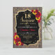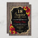 Überraschung 18. Geburtstag Einladung. Weibliche rustikale Schwarz, Weiß, Rot-Design mit Imitaten Glitzer Gold. Verfügt über Holzmuster, rote Rosen, Sonnenblumen, Skript-Schriftart und Konfetti. Ideal für eine elegante Geburtstagsfeier. Kann personalisiert sein, jedes Alter zu zeigen. Nachricht, wenn Sie weitere Anpassungen benötigen.