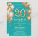 Überraschung 20. Geburtstag Aquamarin und Gold Bal Einladung